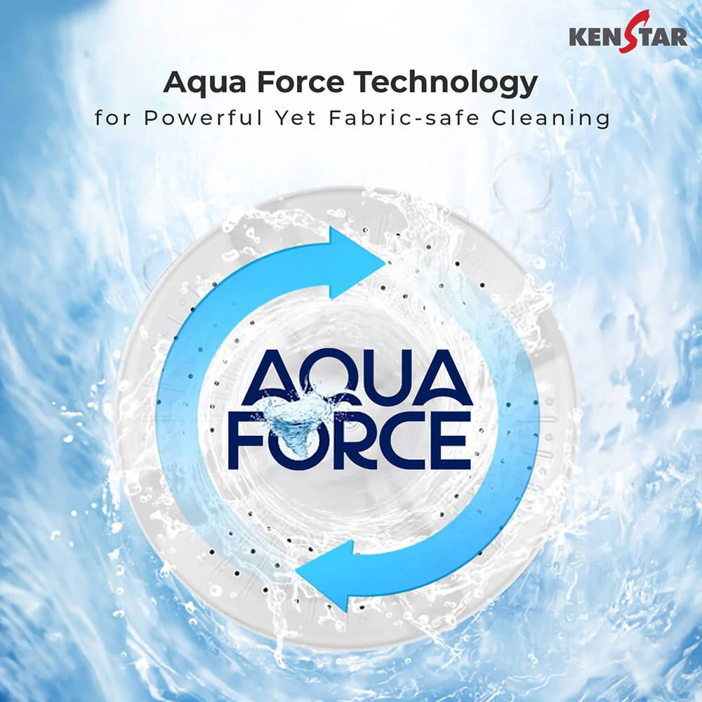 Kenstar's 9.5 Kg KS95HG washing machine is versatile with 3 wash programs—Gentle, Normal, and Strong. It features a built-in Magic filter, a 35-minute wash timer with auto soak, and a waterproof panel for durability. The pulsator with mini pulsator enhances cleaning, and for convenience, it has 2 castor wheels and 2 pads. The toughened glass top and anti-rust body ensure longevity. Warranty includes 2 years for the product and an extended 5 years for the wash motor. Styled in dark grey with a white tub, its compact dimensions (832x485x1050mm) make it space-efficient for any home.
