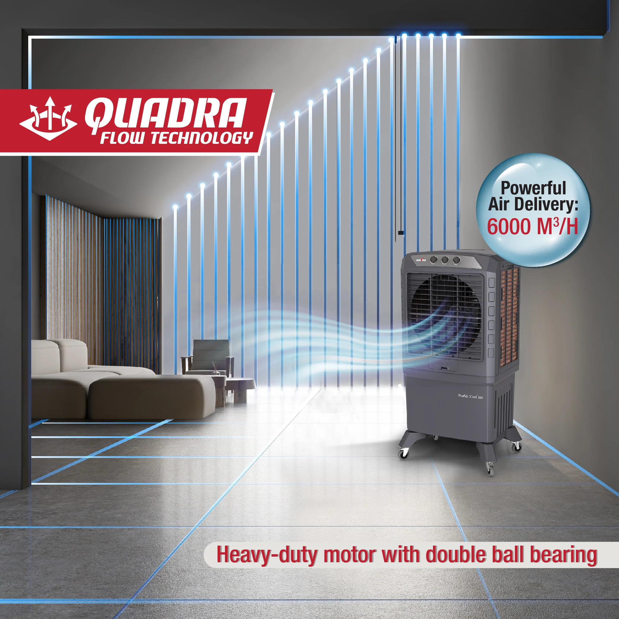The MAHAKOOL HC 110 air cooler delivers outstanding cooling performance with an air delivery rate of 6000 m³/h, ensuring a powerful and effective air circulation across large spaces. Featuring advanced 3-side hydro dense mesh honeycomb cooling pads, it enhances cooling efficiency by providing better water retention and absorption. The cooler is powered by a heavy-duty double ball bearing motor, ensuring strong airflow and durability, paired with a large 45.7 cm fan that ensures consistent and high-volume air throw. Despite its high-performance capabilities, it consumes only approximately 230 watts, making it energy-efficient. With a height of 1345 mm, it is ideal for various applications including living rooms, restaurants, factories, canteens, large halls, warehouses, hotel lobbies, and even outdoor spaces like rooftops and lawns, making it a versatile solution for residential and commercial cooling needs.