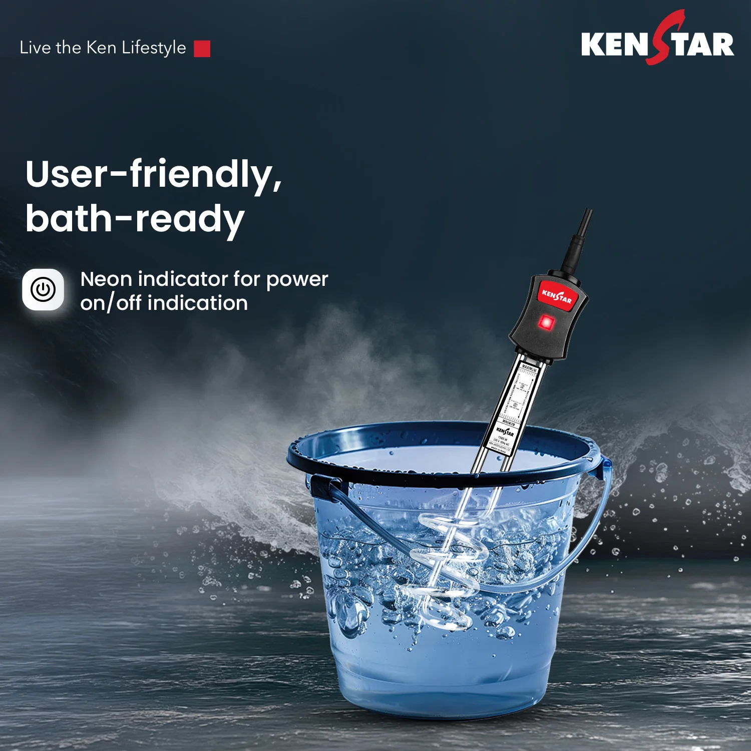 Star Neo immersion rod is designed for efficient and safe water heating, featuring a nickel-plated heating element that ensures faster heating and long-lasting durability. It comes with a sturdy buckle clip for secure placement, allowing safe and stable operation during use. With its compact and lightweight design (approximately 0.48 kg), the rod is easy to handle, carry, and store. It is also equipped with an ISI-certified power cord and moulded plug, offering dependable performance and enhanced safety. A neon indicator clearly signals when the rod is in use, adding user convenience. Additionally, the rod includes a dual safety mechanism to prevent overheating, making it a reliable and safe choice for everyday water heating needs.
